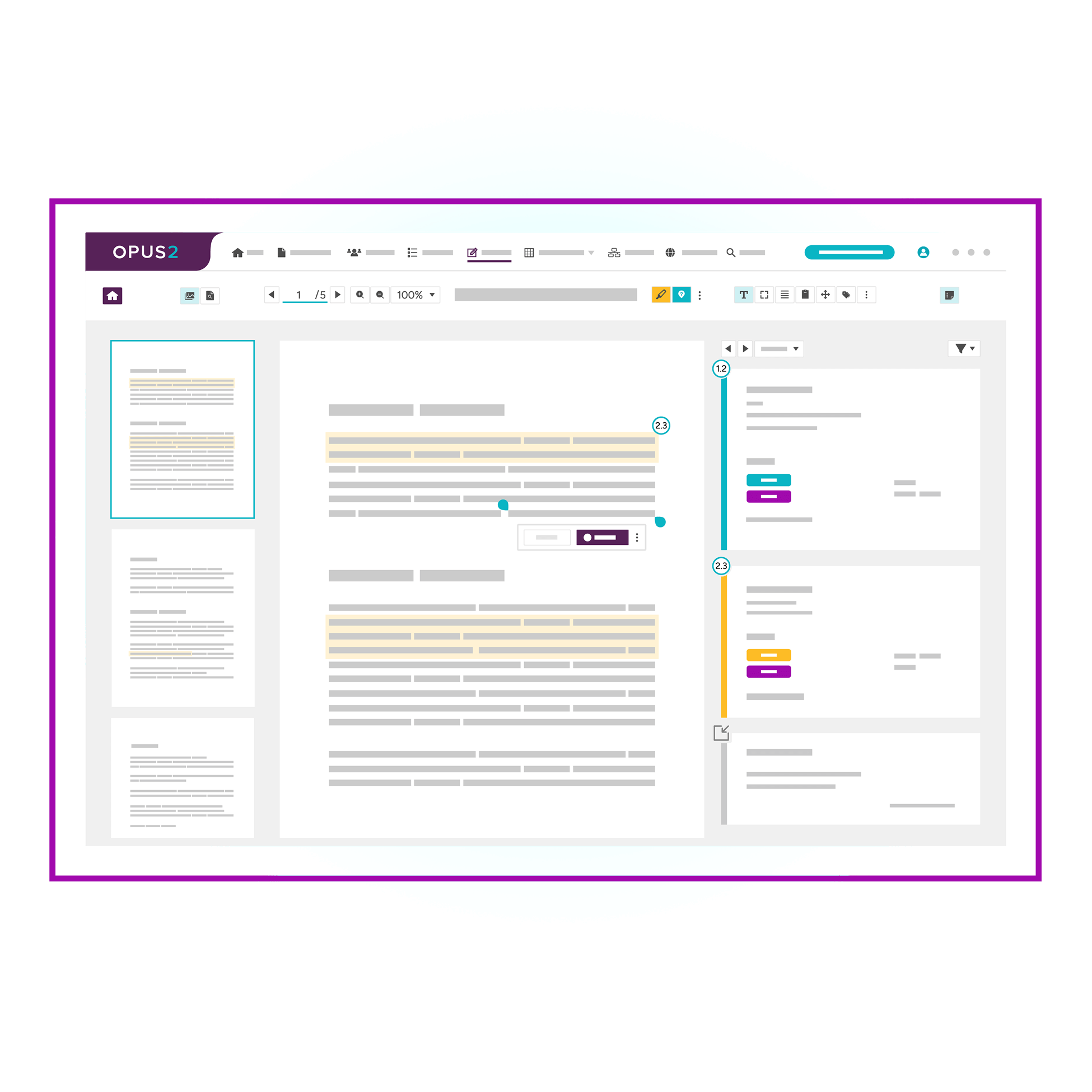 We lead the way in streamlining how legal teams review and analyse case documents. While enabling you to annotate, link, add metadata, and perform other tasks critical to working smarter, we also ensure you have a single source of truth. Through a range of integration options, including our API, Opus 2 Cases centralises all relevant materials in one customisable repository while maintaining security, data governance, and compliance with related ecosystems.